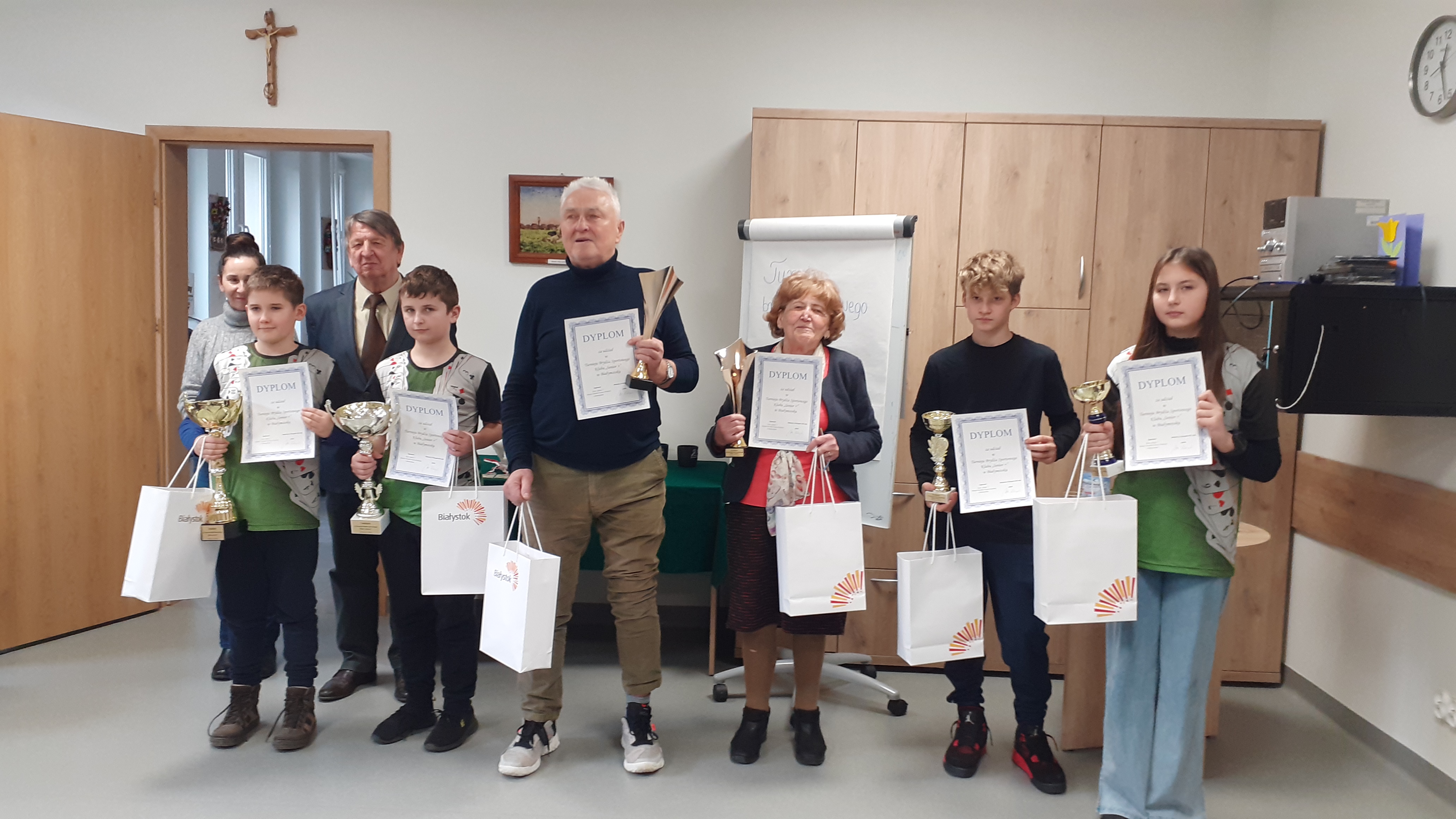 09.10.2021 r. w Szkole Podstawowej nr 19 im. Mieszka I w Białymstoku, odbył się Międzypokoleniowy Turniej Brydża Sportowego, w którym wzięli udział uczniowie tej szkoły ,absolwenci, nauczyciele oraz członkowie Podl. Zw. BS. Turniej był zorganizowany głównie dla dzieci i młodzieży uczącej się grać w brydża sportowego. Wyniki turnieju zaskoczyły niektórych. W czołówce nie znaleźli, się najlepsi ..........taki jest brydż. Dziękuję wszystkim za udział w turnieju. Puchary otrzymały te pary w których jednym z grających był uczeń oraz para najmłodsza, uczestnicząca w turnieju : Maciej Bobowski i Filip Wądołowski. Gratulujemy zwycięzcom !!!!!!!!!