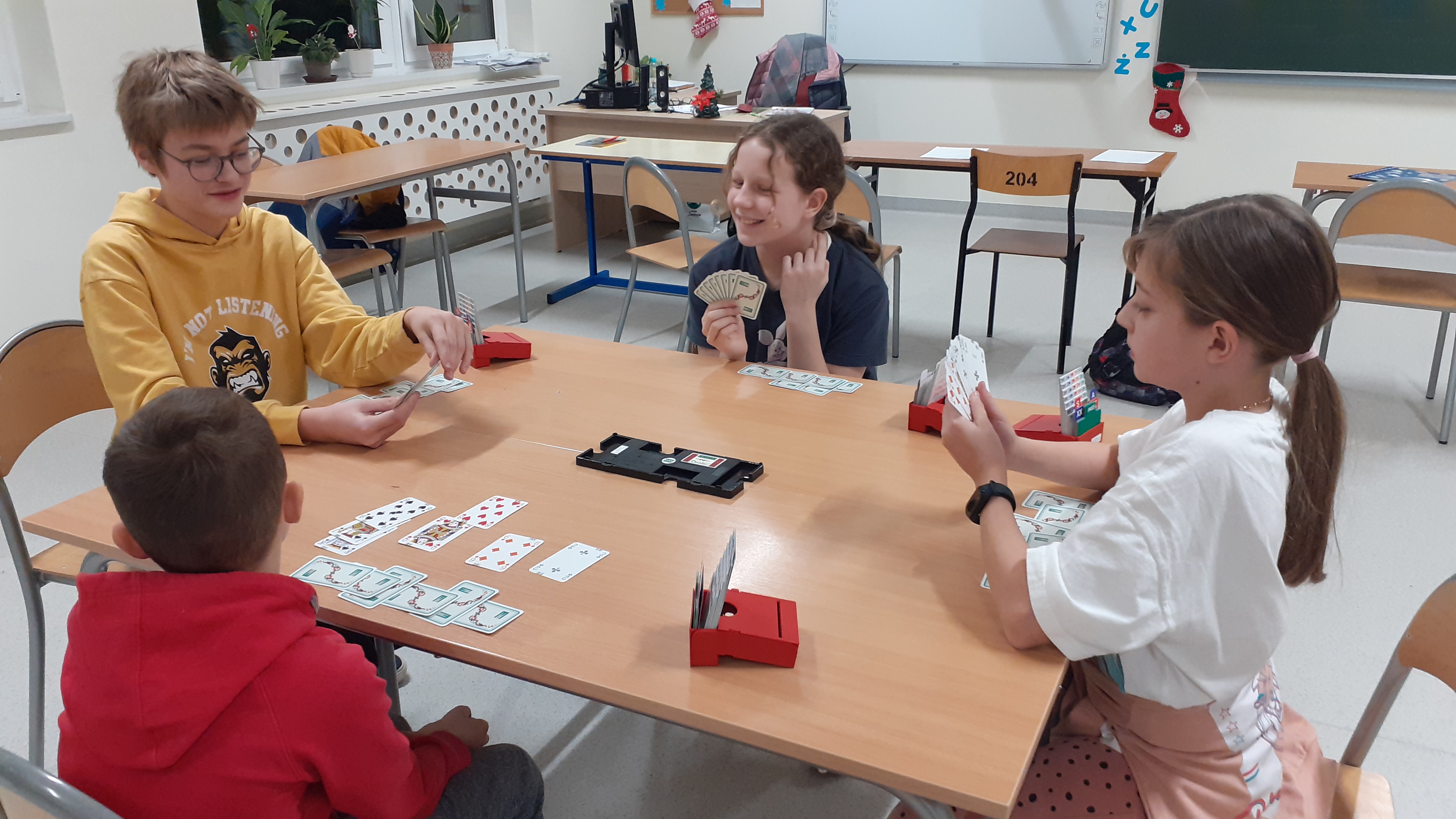 Najmłodsi uczestnicy to uczniowie drugiej klasy szkoły podstawowej, najstarsi - szóstej. Jak zawsze mamy nadzieję, że większość z nich nie potraktuje brydża jako krótką przygodę i zostanie z nami na dłuzej.