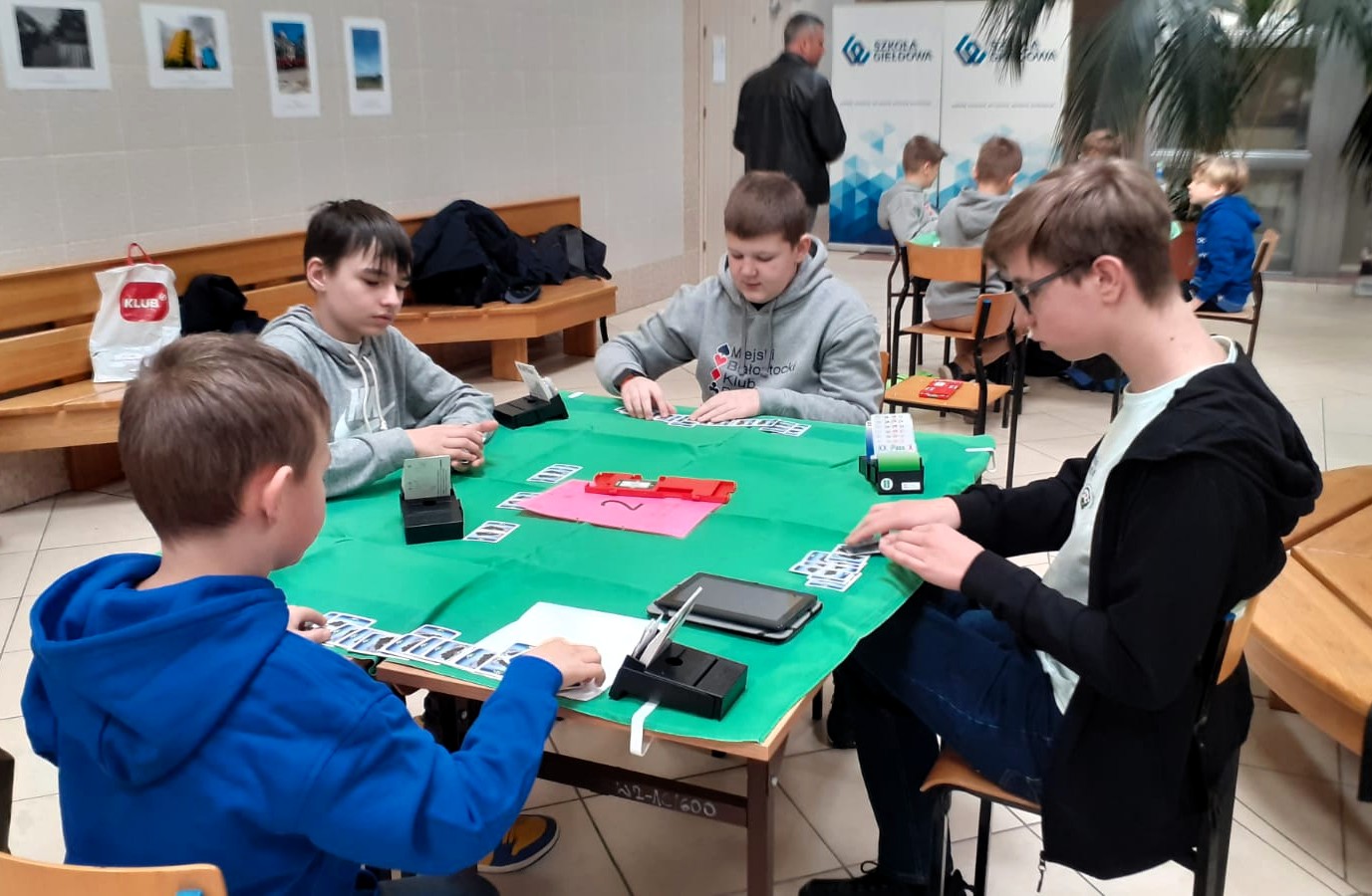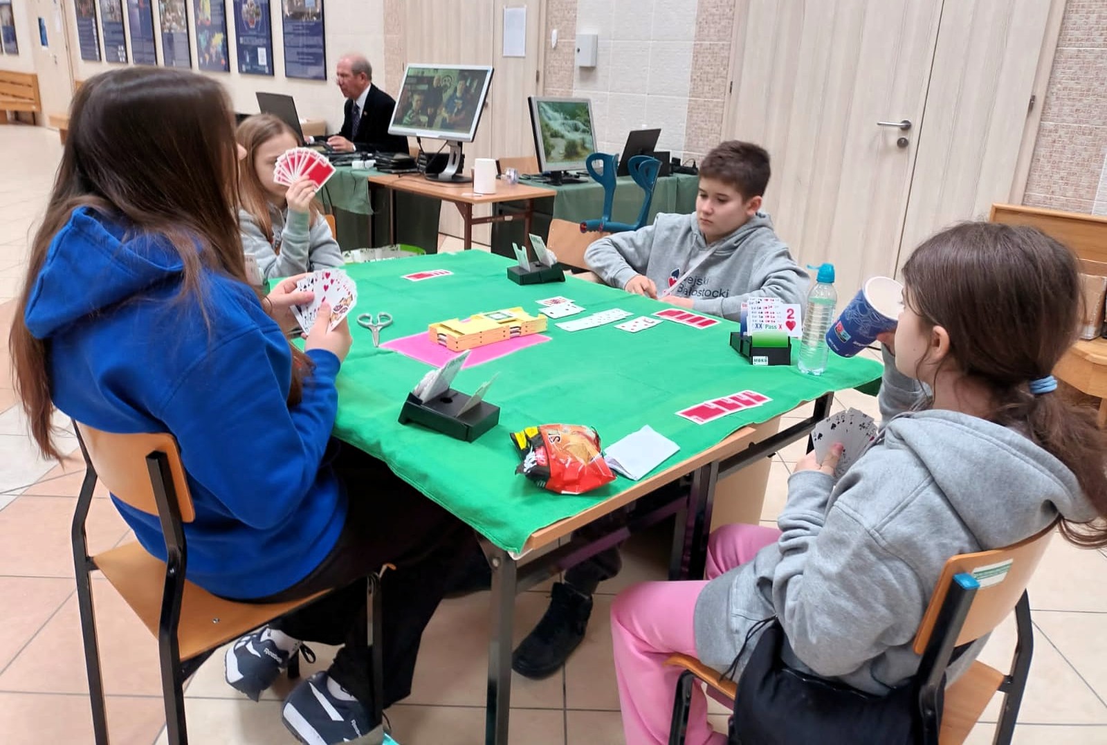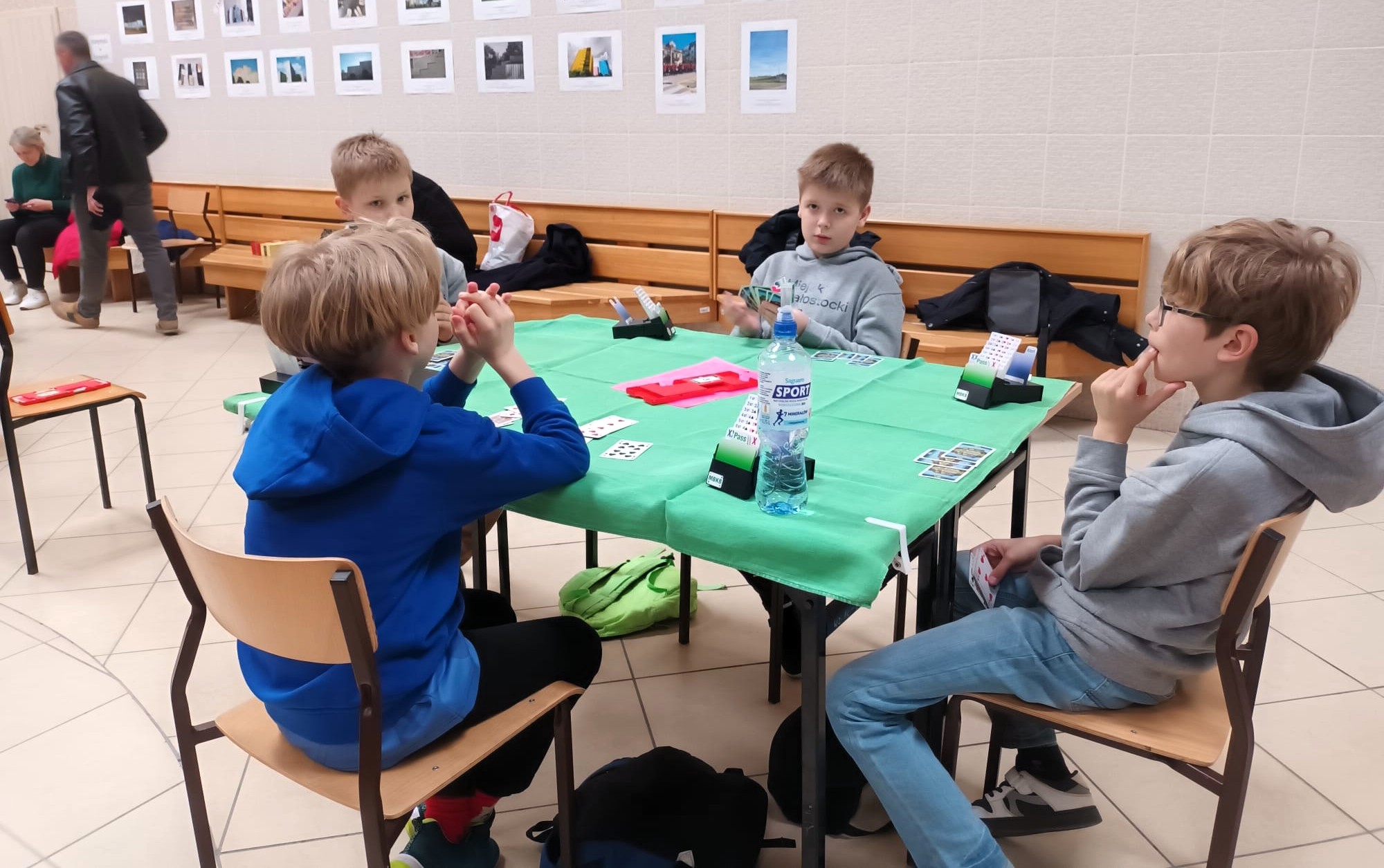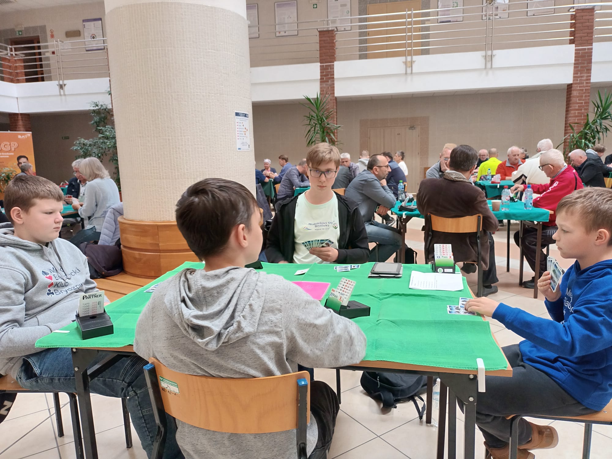 Młodzież spisała się dzielnie, zwłaszcza ci którzy rozpoczęli swoją przygodę z „zielonym stolikiem”. Trzy godziny pracy mózgu, to nie jest takie proste. Zmęczenie, koncentracja i strategia muszą iść w parze. Emocje są były duże, kibicowali rodzice, którzy nie zawsze wiedzą, na czym polega brydż sportowy.