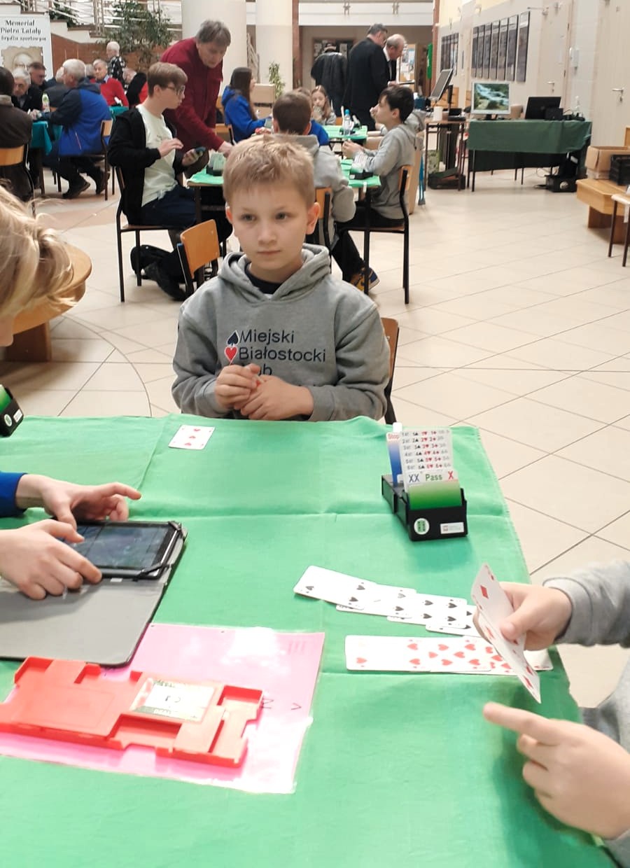 22 listopada 2023 roku, odbył się już kolejny Międzypokoleniowy Turniej Brydża Sportowego , w którym udział wzięli uczniowie z kilku białostockich szkół podstawowych oraz seniorzy. Rywalizowaliśmy w Klubie Seniora przy ul. Białej w Białymstoku. Widać było, że dla jednej i drugiej grupy wiekowej, turniej sprawił dużą FRAJDĘ. I o to właśnie chodzi a sukcesy przyjdą później. Niektórzy uczniowie zaczynają dopiera edukację brydżową i muszą poczekać, żeby zagrać w takim turnieju.