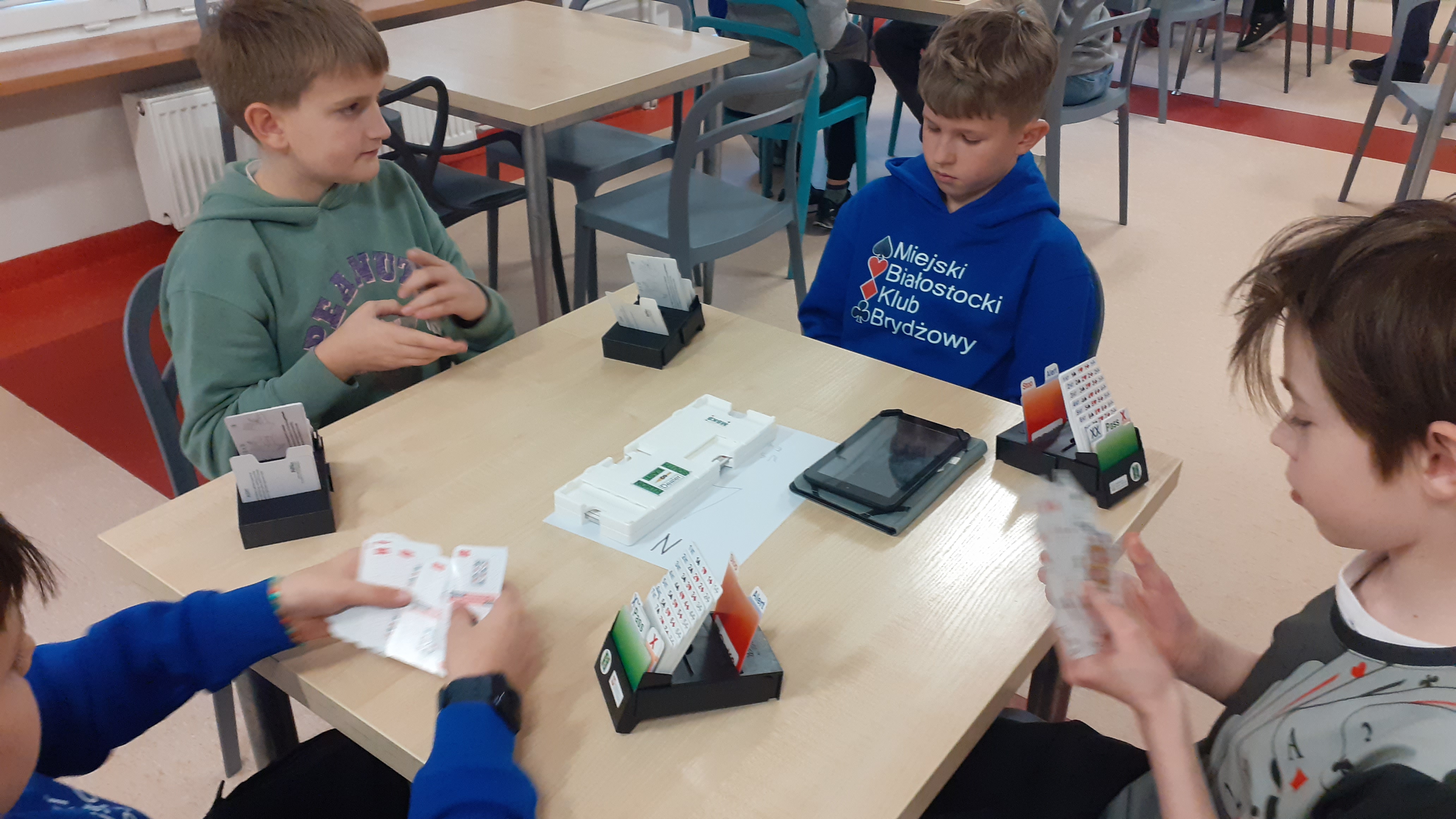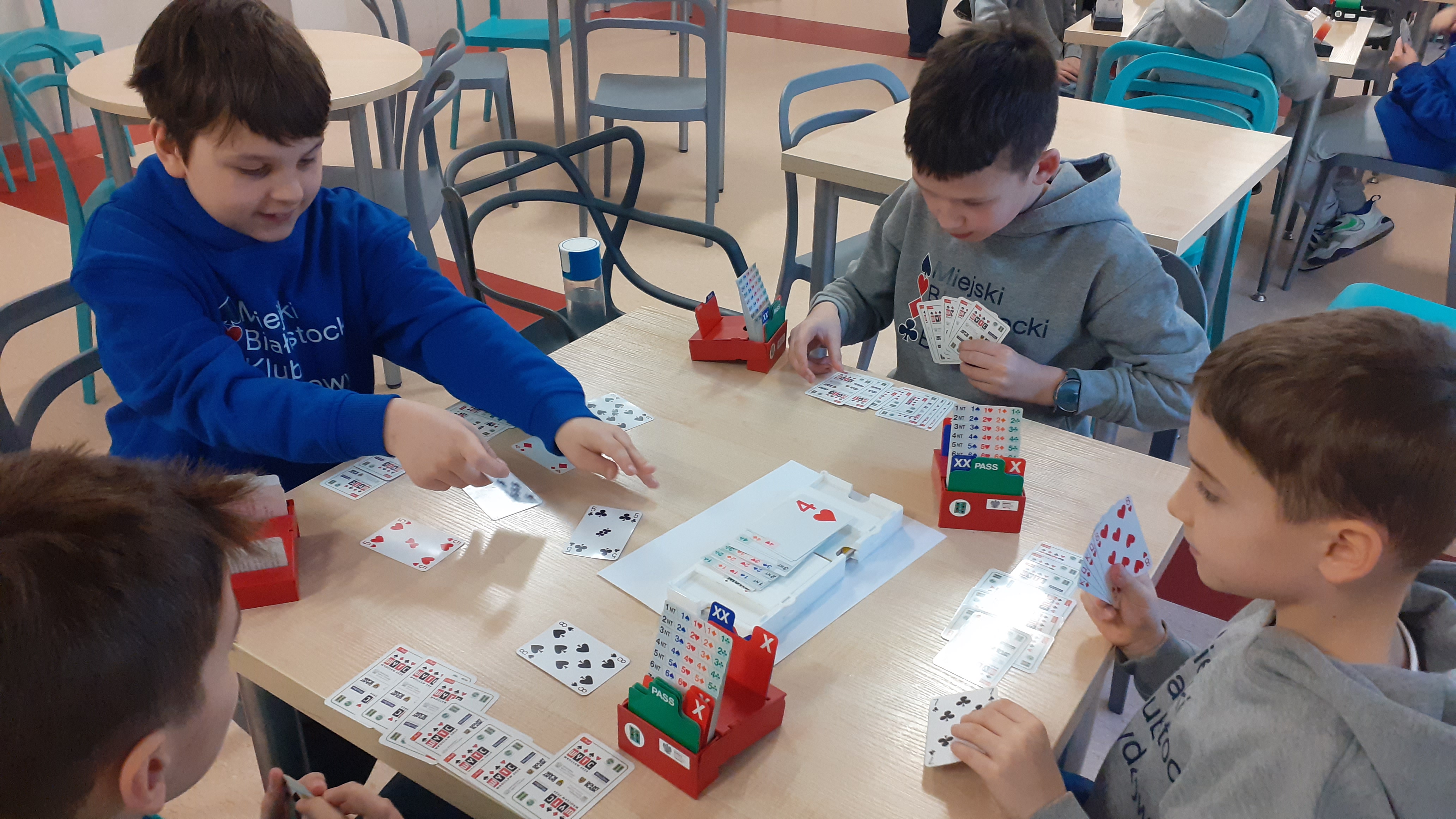 31.03.2023 nasi najmłodsi brydżyści będą reprezentować Miejski Białostocki Klub Brydżowy na Mistrzostwach Polski Dzieci w brydżu sportowym. Są to uczniowie 4- tej i 5-tej klasy. Systematyczne treningi w szkole oraz dodatkowe poza szkołą, pozwoliły im zdobyć takie umiejętności brydżowe, że mogą już wziąć udział w mistrzostwach i zmierzyć się z innymi dziećmi z Polski. Ponadto młodzi brydżyści brali już udział w trzech turniejach – rywalizowali z brydżystami miasta Białystok. Mistrzostwa odbędą się w Tęgoborzu w województwie małopolskim. Być może wrócą z medalami, czego im oczywiście życzymy i trzymamy kciuki. Powodzenia !!!!!